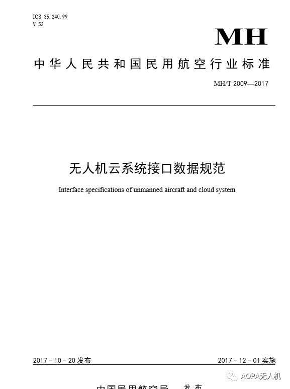 中國(guó)民航局發(fā)布無(wú)人機(jī)云系統(tǒng)接口數(shù)據(jù)規(guī)范,將于12月1日起實(shí)施。
