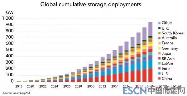 根據(jù)研究公司彭博新能源財經(jīng)(BNEF)的最新年度預測,從現(xiàn)在到2040年,電池成本的下降將推動全球范圍內(nèi)安裝儲能系統(tǒng)的熱潮。