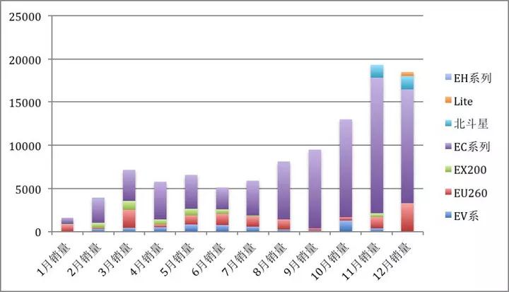 北汽新能源則是國(guó)內(nèi)首家年產(chǎn)銷超過(guò)十萬(wàn)輛的純電動(dòng)車(chē)企。其中北汽EC180銷量78079輛,占比北汽新能源總銷量的近75%,據(jù)統(tǒng)計(jì),EC180近一半的銷量用于分時(shí)租賃領(lǐng)域,還有一部分銷售至山東、河南等地,搶占了部分低速電動(dòng)車(chē)市場(chǎng)。但隨著補(bǔ)貼對(duì)中高端產(chǎn)品的傾斜,未來(lái)北汽新能源或需要調(diào)整自己的戰(zhàn)略。