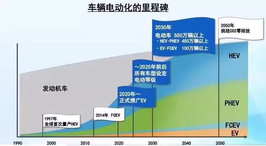豐田致力于降低車輛碳排放的方式,從1997年全球首次量產(chǎn)HEV(混合動(dòng)力),到2014年量產(chǎn)的Mirai是FCEV(燃料電池動(dòng)力)。豐田的混合動(dòng)力汽車在全球的銷量在2017年1月底,就突破了1000萬(wàn)輛。