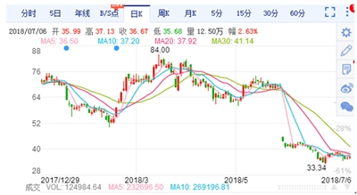 未來,贛鋒鋰業(yè)的資源和產(chǎn)能將大大提升,其發(fā)展前景可期。然而,其目前的股價(jià)也不甚理想(見圖二)。截至7月6日收盤,其股價(jià)為37.87元,市盈率為24.97,市凈率為6.87,具備較好的投資價(jià)值。