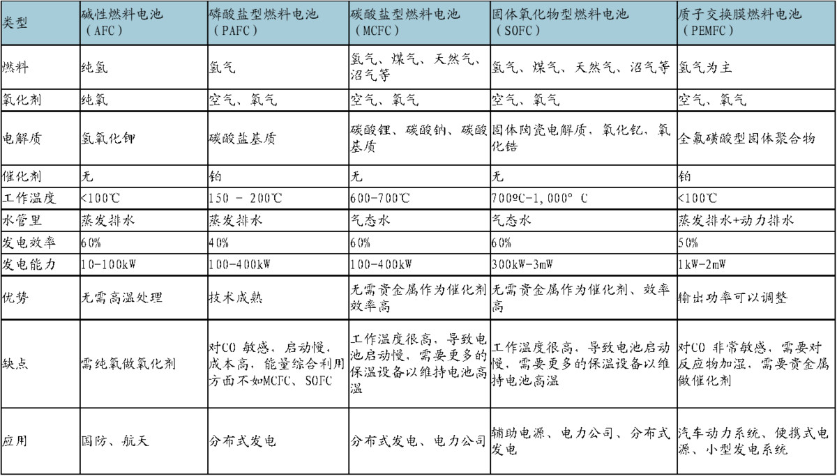 各類(lèi)燃料電池指標(biāo)及應(yīng)用領(lǐng)域概述