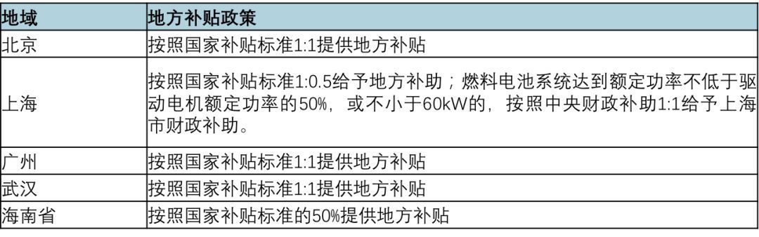 燃料電池汽車(chē)地方補(bǔ)貼標(biāo)準(zhǔn)