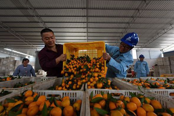 40多歲的興安農(nóng)民唐建文經(jīng)營(yíng)的興安縣界首鎮(zhèn)鑫龍蠟廠在界首百里的“水果市場(chǎng)一條街”上規(guī)模最大,占地1500平方米,擁有100多名工人,每年只需勞作不到三個(gè)月,便能為他家?guī)?0多萬(wàn)元的豐厚收入。在廠房里,長(zhǎng)達(dá)10余米的自動(dòng)化柑橘保鮮生產(chǎn)線上,火紅的柑橘正被清洗、保鮮,如同一個(gè)個(gè)跳動(dòng)的音符,十幾名女工在流水線末端排座,雙手如飛梭一般熟練地將較大個(gè)地柑橘挑選出來,再由旁邊的工人把柑橘裝箱運(yùn)往世界各地,最遠(yuǎn)的已經(jīng)到了俄羅斯。面對(duì)如此繁榮的水果市場(chǎng)運(yùn)營(yíng),這在以前唐建文是難以想象的。