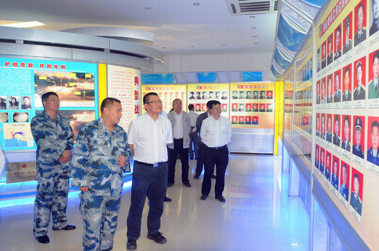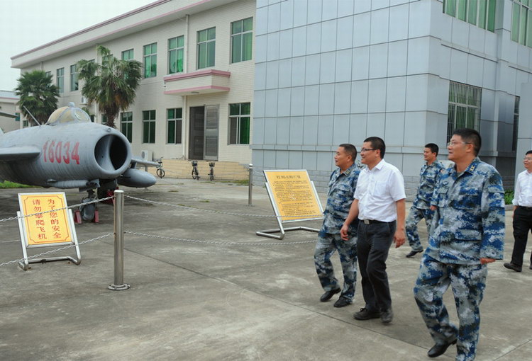 在空軍遂溪機場站遲彥偉站長的陪同下,湛江局局長陳曄一行參觀空二師師史展覽館。
