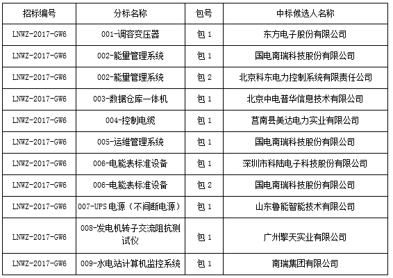 國(guó)網(wǎng)黑龍江2017年第六批物資招標(biāo)采購中標(biāo)候選人公示